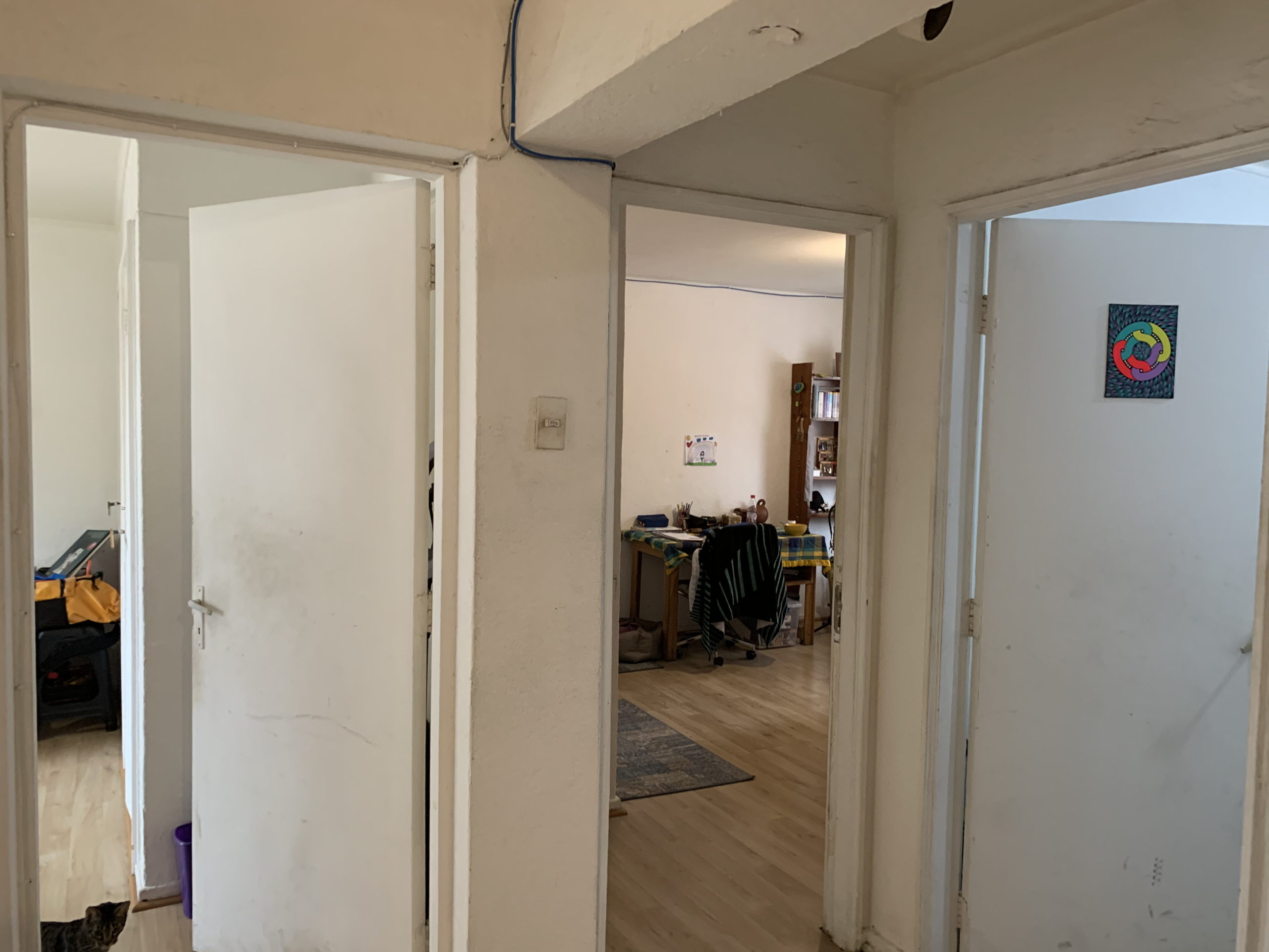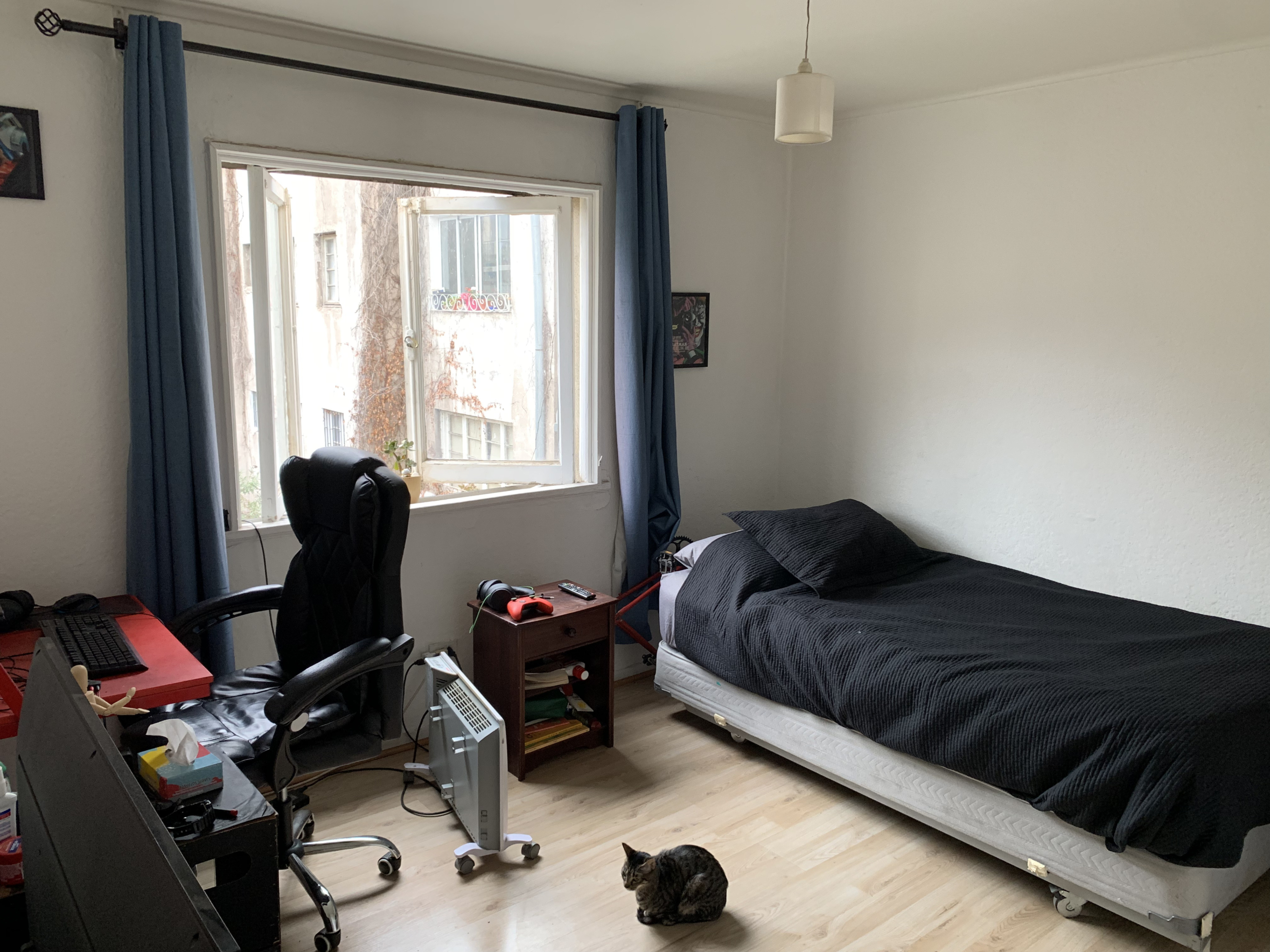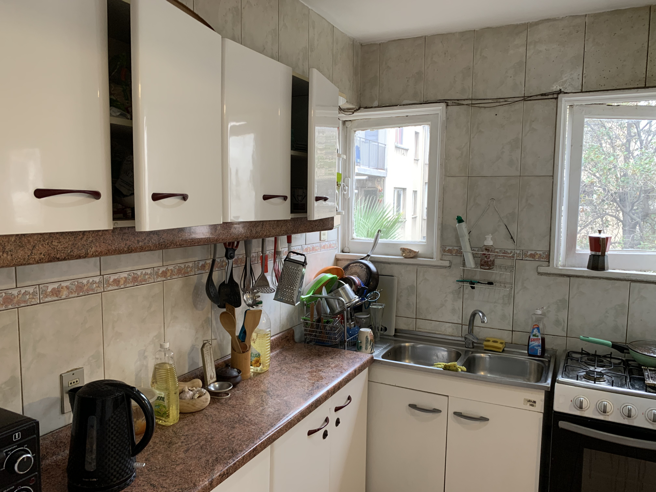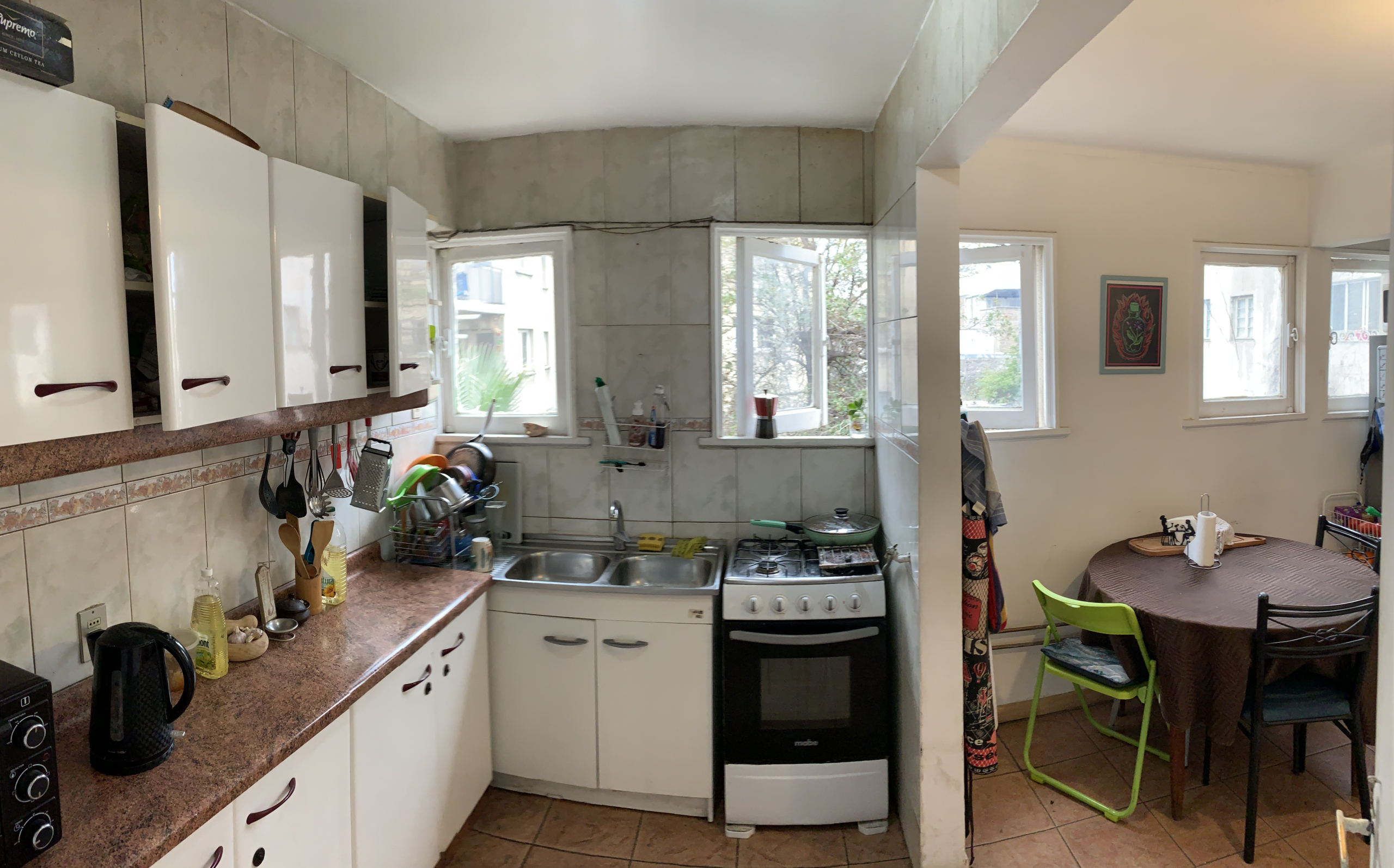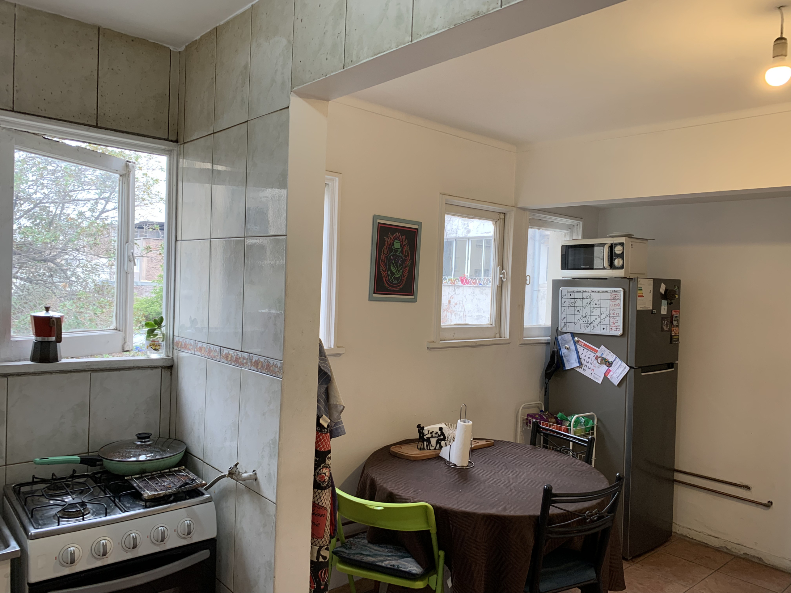 La entrada al departamento nos muestra un amplio living con ventanal hacia el Poniente; la cocina la encontramos muy próxima, es tan grande que puede perfectamente disponer un comedor diario, es un lugar muy cálido con una excelente luz natural que invita a compartir momentos con tecitos y comida. El pasillo nos conecta a las cuatro habitaciones de este departamento, todas muy generosas en espacio con amplias ventanas que garantizan excelente luminosidad y flujo de aire. Posee dos baños, ambos con ventilación natural, condición que se agradece en un departamento.