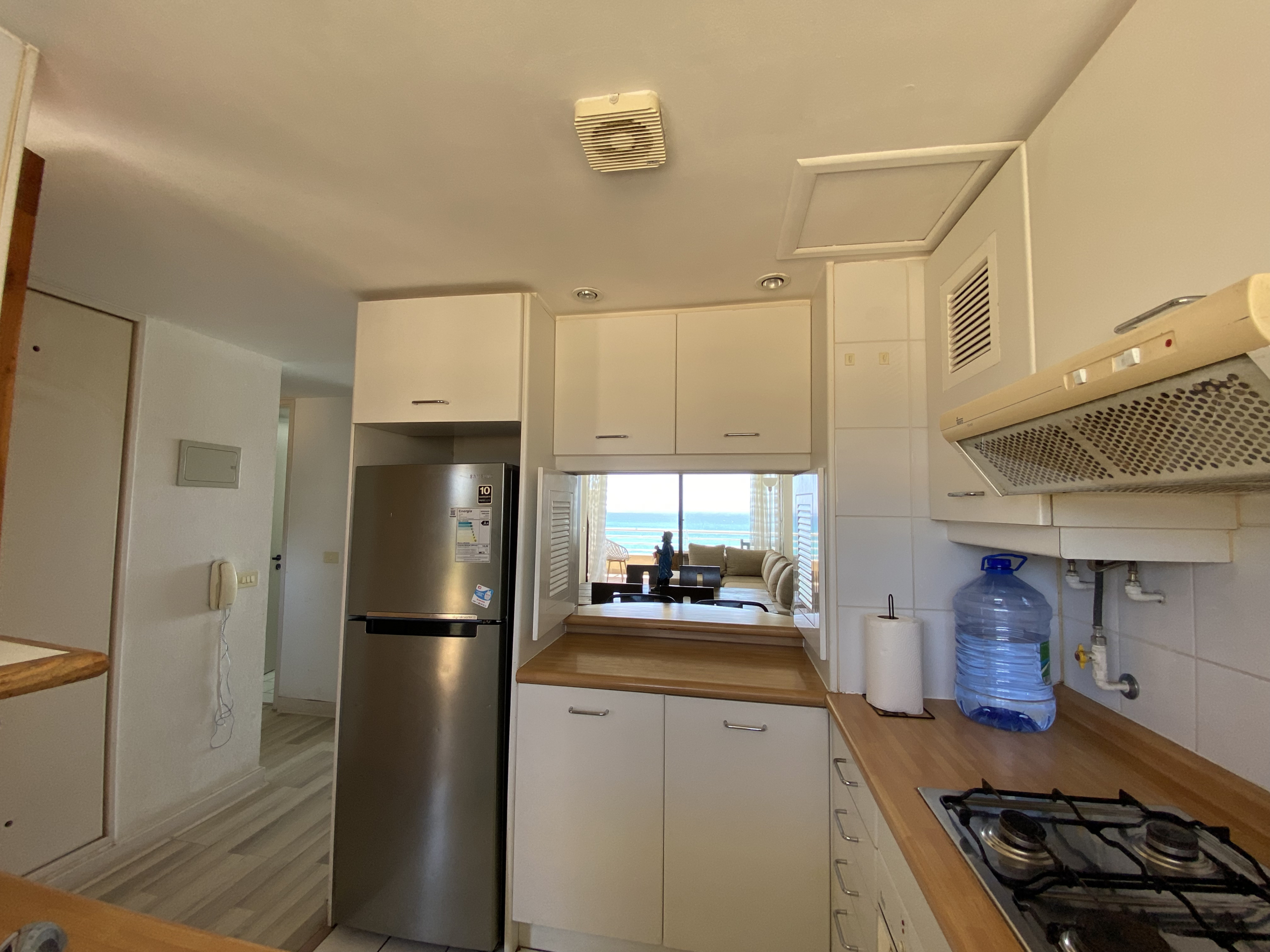 Cocina abierta y equipada.