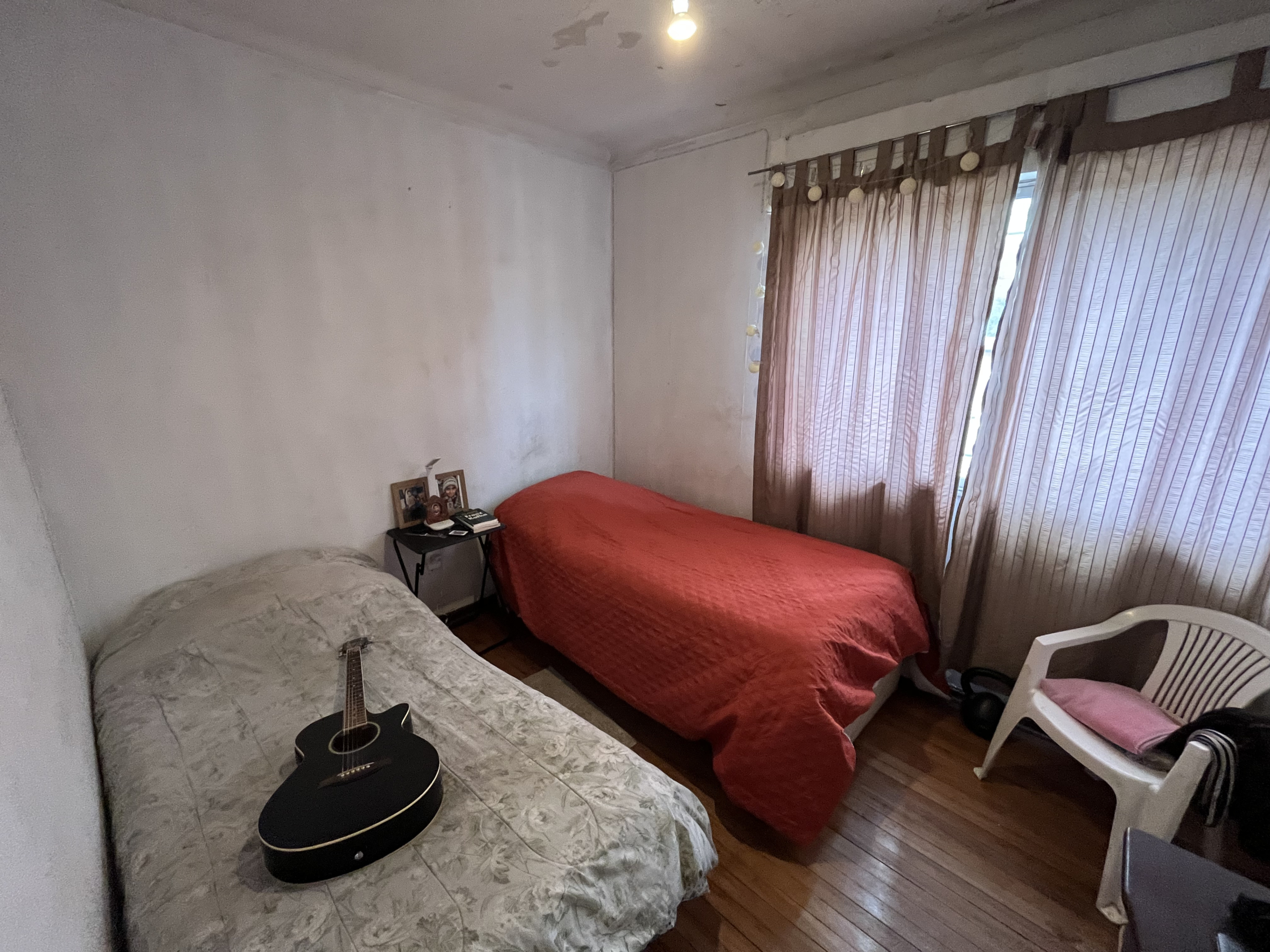 Entrando encontramos el Living y comedor; si giramos hacia la izquierda vemos una habitación que puede ser un espacio de estudio o juego y por el pasillo encontramos tres habitaciones de gran tamaño, más un baño recientemente remodelado, con ventilación natural.